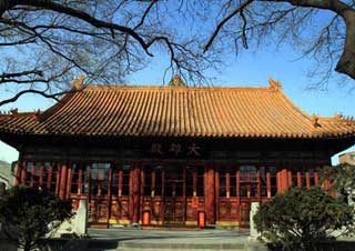 Gate in Xicheng District, Guangji Temple, initially called Xiliucun Temple, was founded in the late Song Dynasty. It is one of the most famous Buddhist temples in China. Facing the south, major structures arranged in the central axis of the temple are main gate, Heavenly King Hall, MahavTra (Grand Lord) Hall, Yuantong Hall (or Buddhisattva Hall) and Sutra Hall. On the east and west sides of the temple are side halls and bell tower & drum tower. At the northwest corner are the Jietan Hall and the Abstinence Altar of white marble, which is the oldest structure left in Guangji Temple, and remains well preserved. The temple is arranged symmetrically, orderly and precisely, solemn and tranquil.